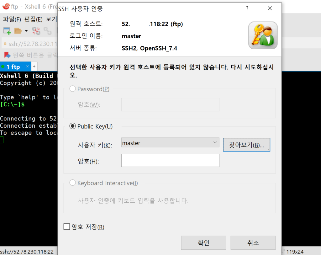 생성된 키를 통해 sftp와 ssh 접속을 해보도록 하겠습니다.