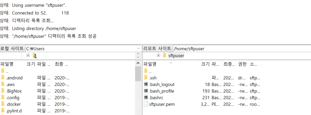 master 계정 생성에 성공하였다면, sftpuser 생성은 해줄 것이 별로 없습니다.