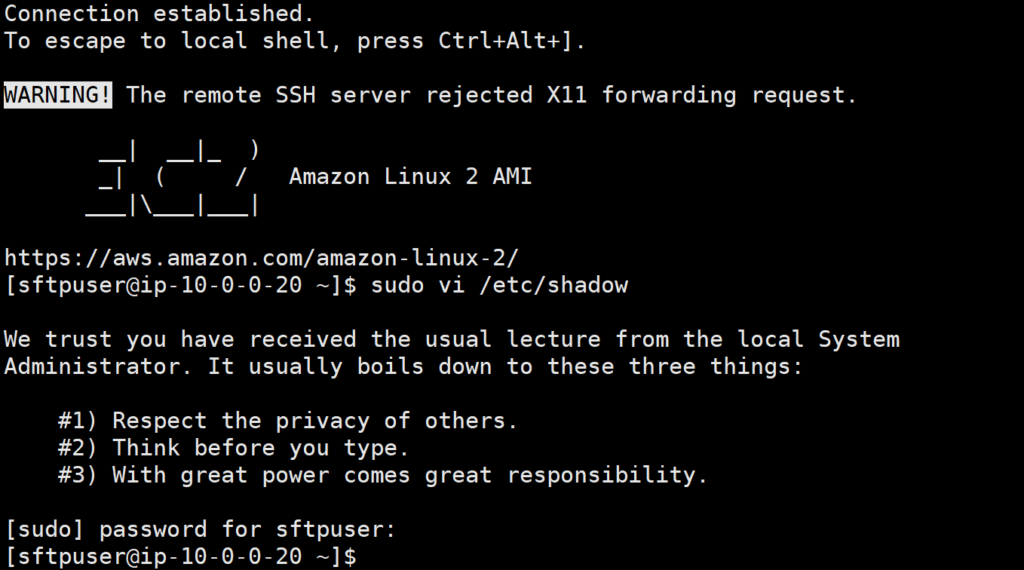 [root@ip-10-0-0-20 ~]# useradd sftpuser