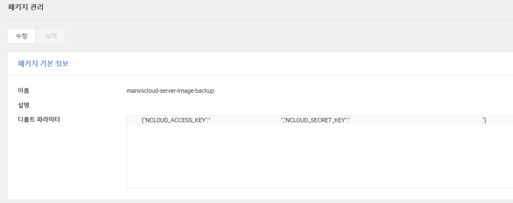 - 패키지 : 위에서 생성한 패키지 추가 (manvscloud-server-image-backup)
