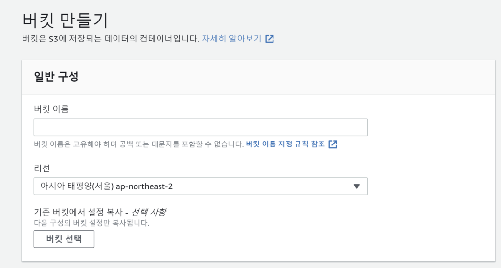 region: 'ap-northeast-2' // 버킷을 생성한 리전 입력