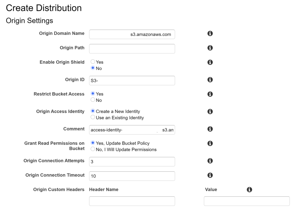 Origin Domain Name에 위에서 생성한 S3를 선택해줍니다.