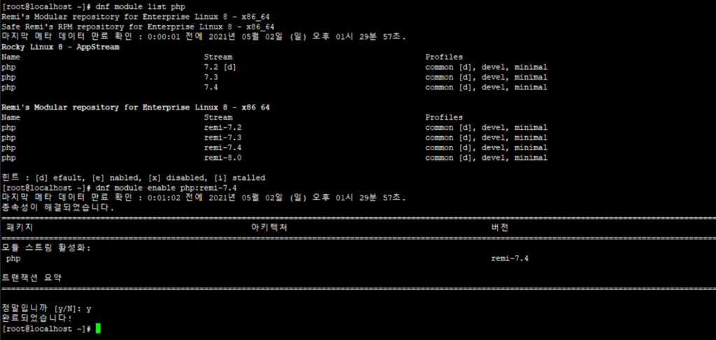 위 명령어처럼 EPEL 저장소를 추가해주어야 dnf module list php 명령어를 입력했을 때 추가 버전을 확인할 수 있을 것입니다.
