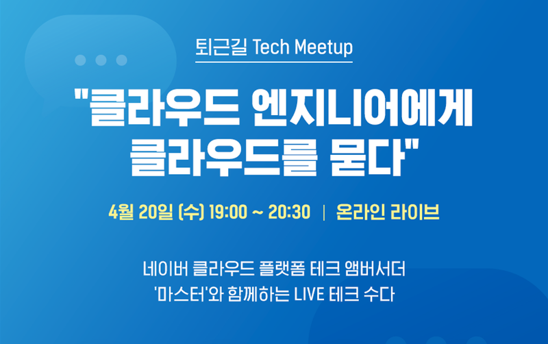 Naver Cloud Platform에서 퇴근길 테크밋업으로 온라인 라이브 Q&A 토크쇼를 진행하여 소식을 공유드리고자 포스팅하게 되었습니다.