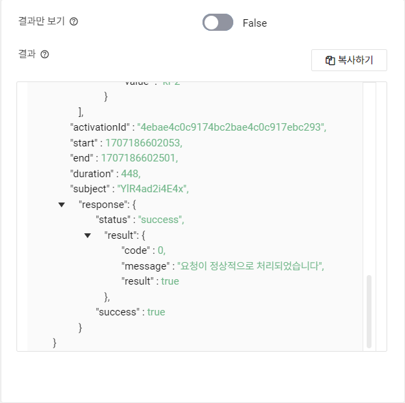 생성한 Cloud Functions을 실행할 경우 위와 같이 정상 실행되어야하며 정상 실행될 경우 Object Storage에서 저장된 로그를 확인할 수 있습니다.