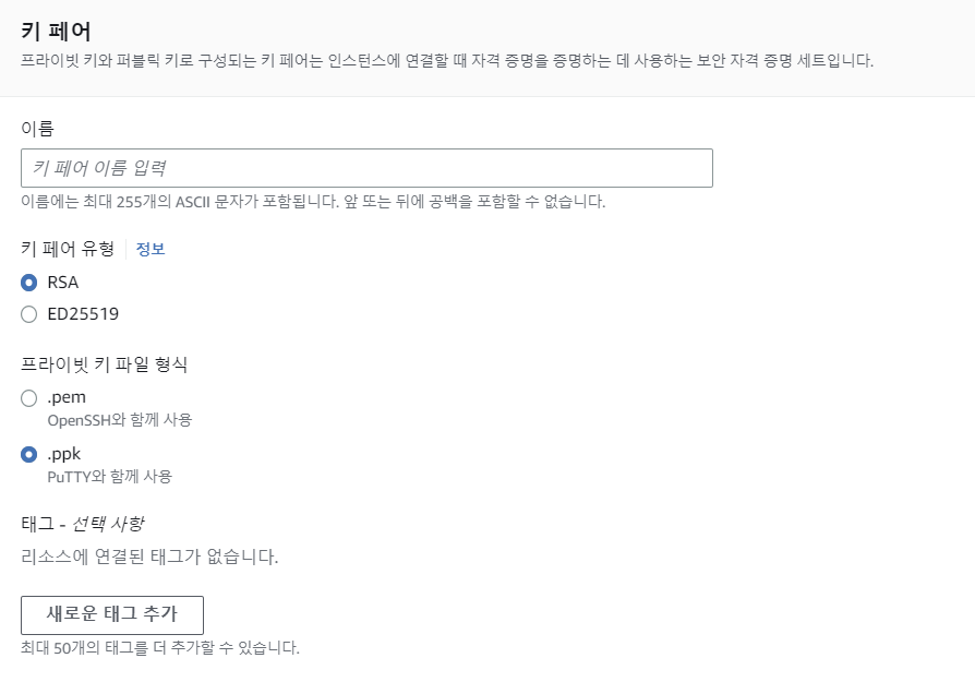 키 페어 생성 시에 유형을 직접 선택할 수 있으니 참고하자.