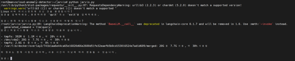 이러한 기본적인 시스템 구축을 통해 AI 기반의 서버 관리 시스템이 실제로 구현 가능하다는 것을 확인할 수 있었습니다.