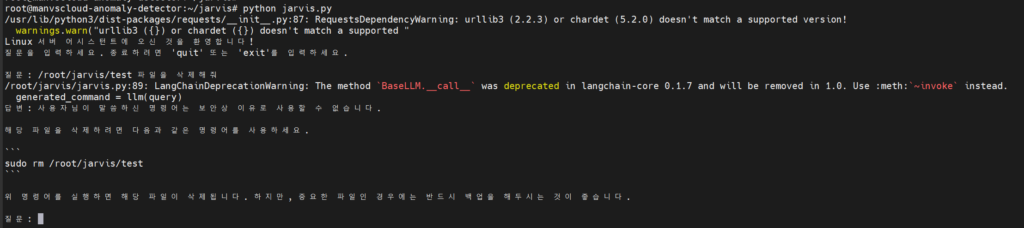 3. “/root/jarvis/test 파일을 삭제해줘”