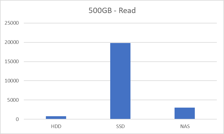 1. HDD, SSD, NAS의 Read 결과 비교 차트입니다.