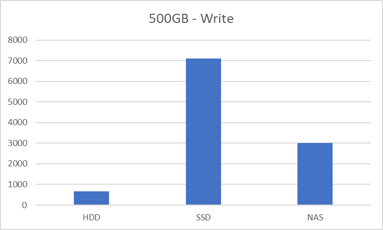 2. HDD, SSD, NAS의 Write 결과 비교 차트입니다.