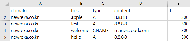 DOMAIN = 'newreka.co.kr' # 대량의 레코드 변경이 필요한 도메인