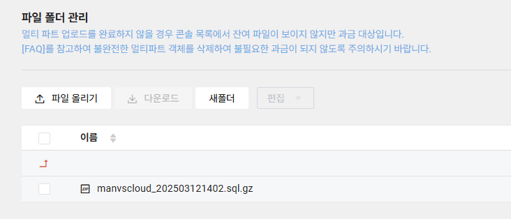 echo "백업 파일이 성공적으로 NAVER Cloud Object Storage에 업로드되었습니다."