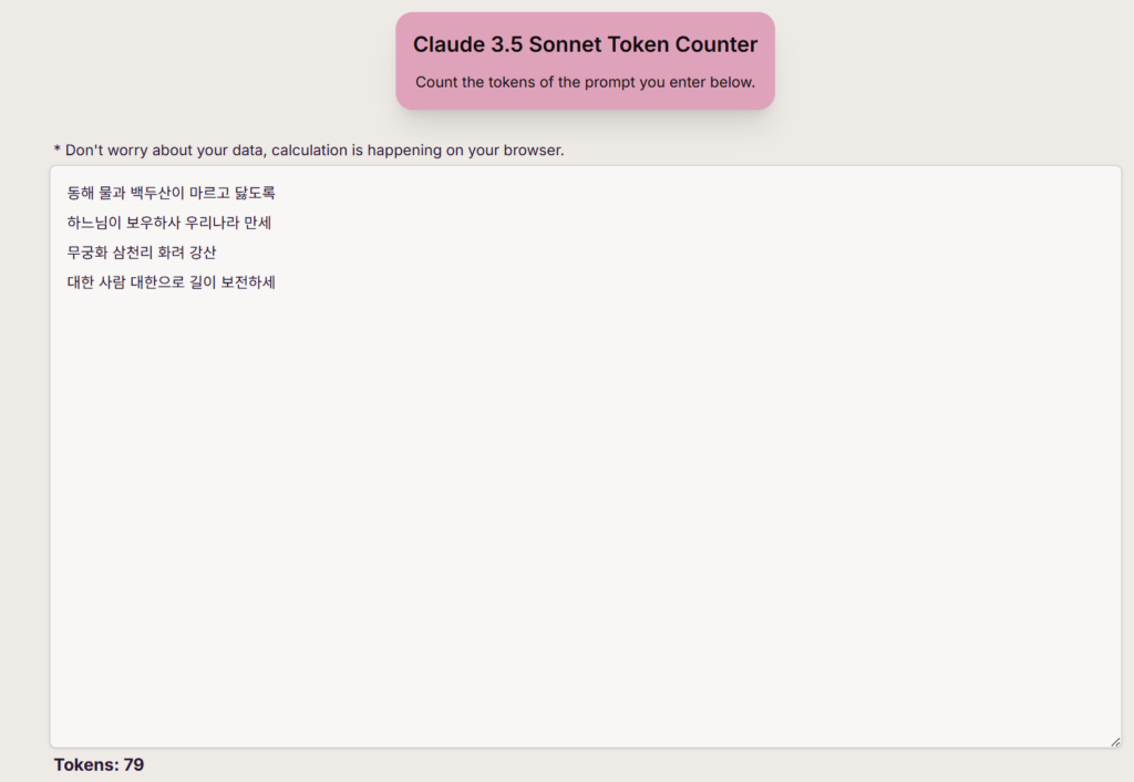 여기서 위 문장(애국가)을 처리한 토큰 수를 곱하여 최종 토큰 비용을 계산해보겠습니다.