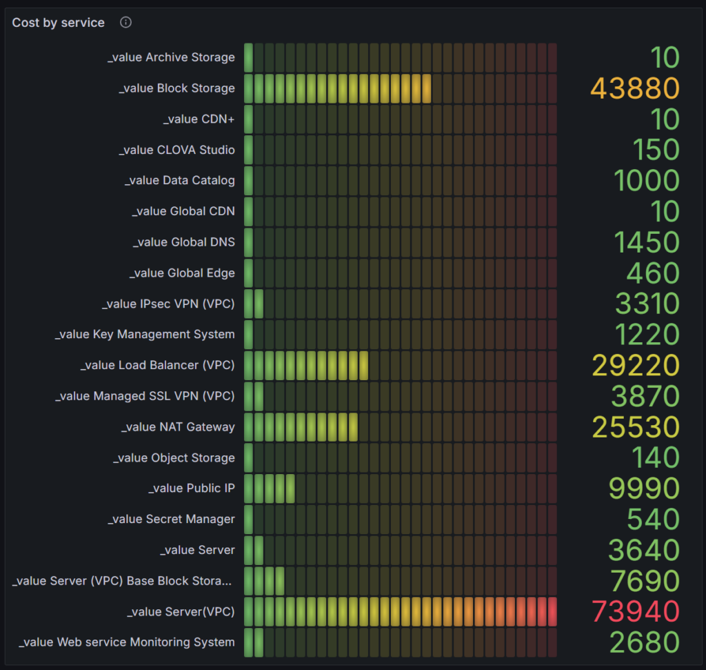 예시 #1) Grafana 서비스별 비용 대시보드(Server(VPC))